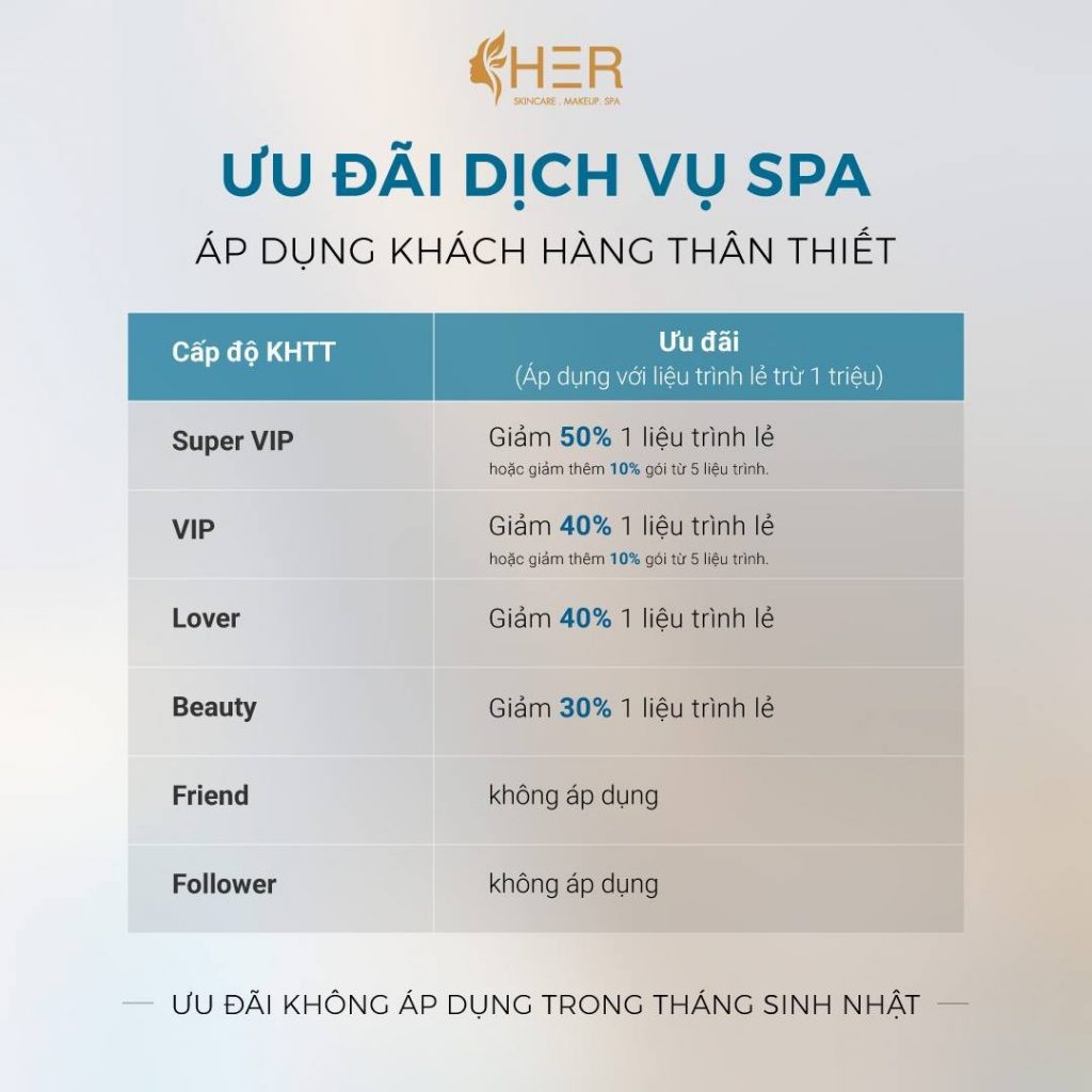 Tích điểm là chương trình phổ biến giúp khách hàng trung thành hơn. Điểm thưởng càng cao, quà tặng càng giá trị, và khách sẽ ưu tiên quay lại Spa thay vì chọn nơi khác.